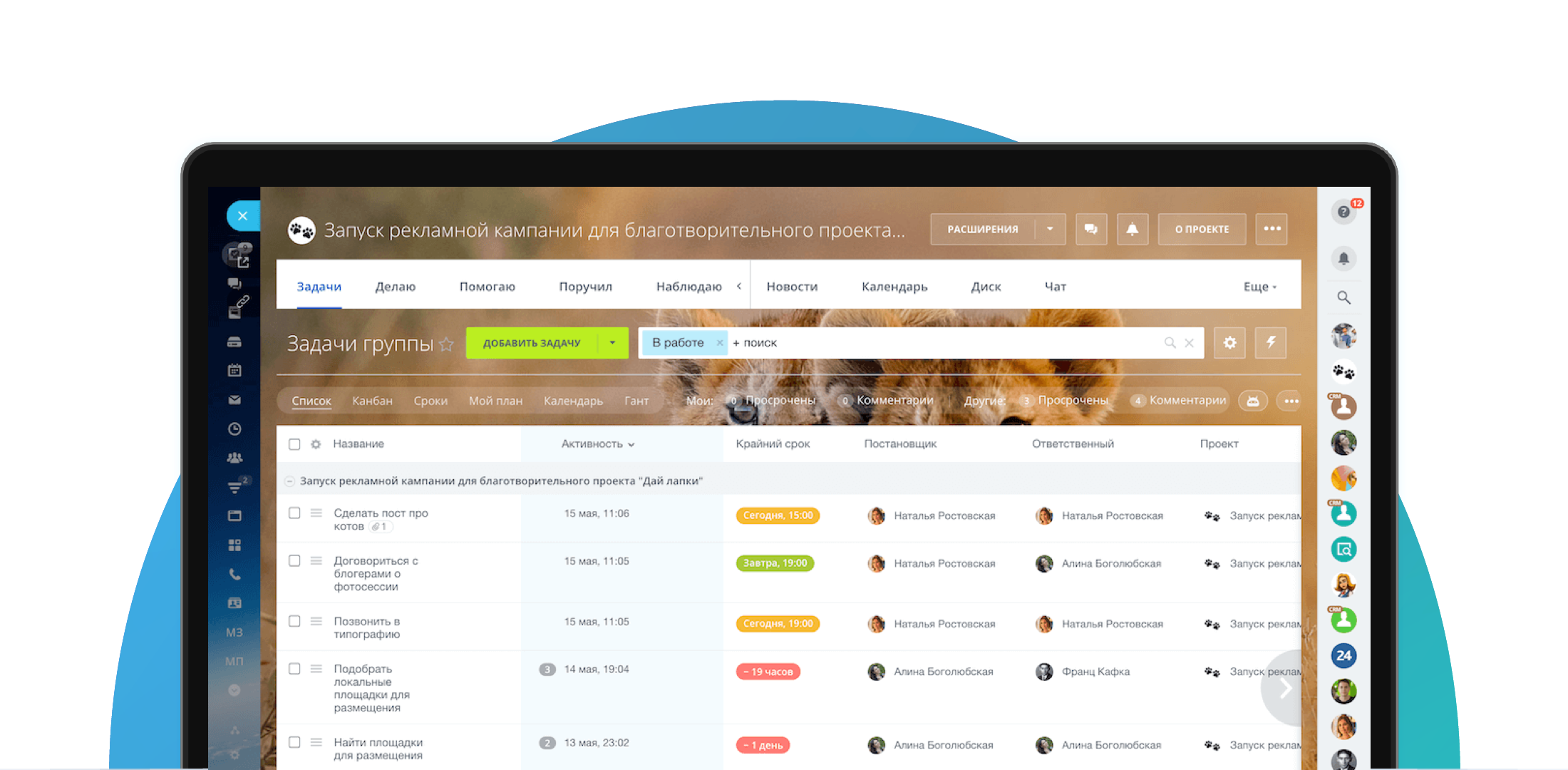 Ставьте и контролируйте задачи любой сложности; добавляйте чек-листы и файлы; выбирайте ответственных, наблюдателей и сроки в несколько кликов.