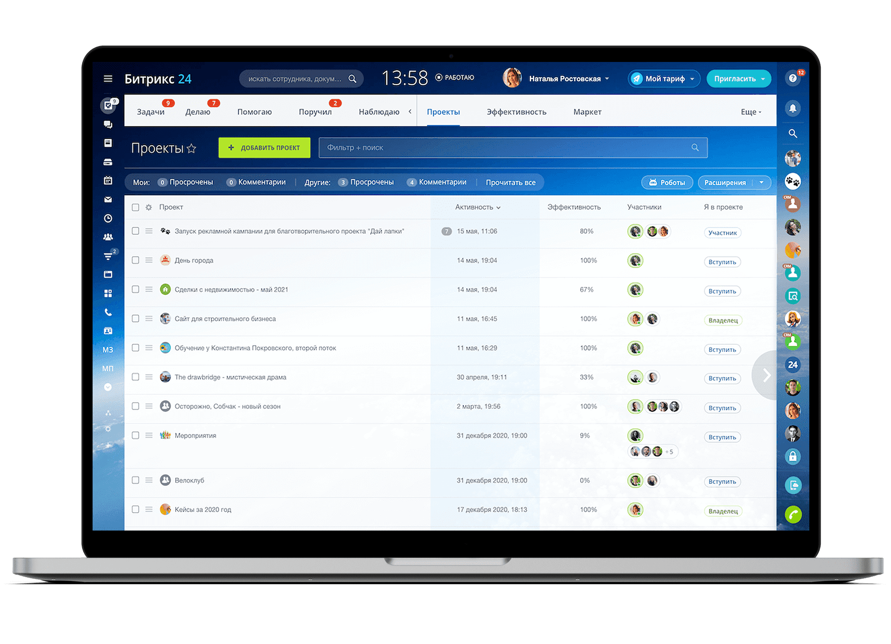 В Битрикс24 собран весь набор профессиональных инструментов, необходимых для эффективной работы с задачами и проектами. Поэтому он идеально подходит для компаний любого размера и сферы бизнеса.